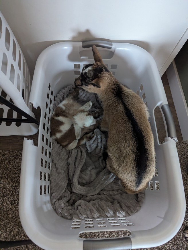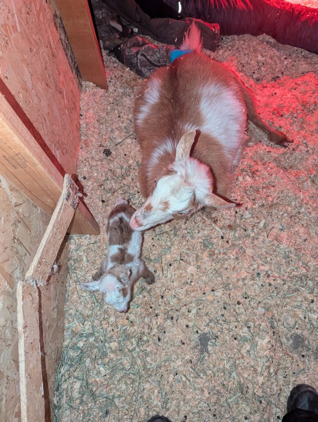 I was ready for complications but this one shook me. I thought the worst I would have to deal with was maybe having to reposition a baby. Now, I feel so much guilt and I wonder what else I could have done. My vet friend said there was nothing I could have done to save her. The breech baby was stuck and even she couldn’t free it. I still wonder if I had done something Thursday if things would have been different. However, there were really no signs that she was in active labor or distress. If she was I don’t know how we got one live baby in the end. Or how we got one baby and a placenta past the other two. So, in the end, we lost our doe and gained her doeling. Her little one was named Ember, as in her mom’s last little ember, and she is the cutest thing you’ve ever seen. She is taking the bottle and doing just fine. I am still struggling with Glimmer’s death and how it happened. Everything I have ever read says if you have livestock you will have deadstock, but even so, it’s hard. It feels like I failed. I was supposed to keep her safe and I didn’t. That’s a tough pill to swallow